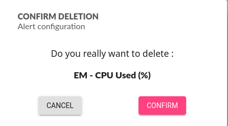 Clicking on opens delete modal, allowing to delete an alert.